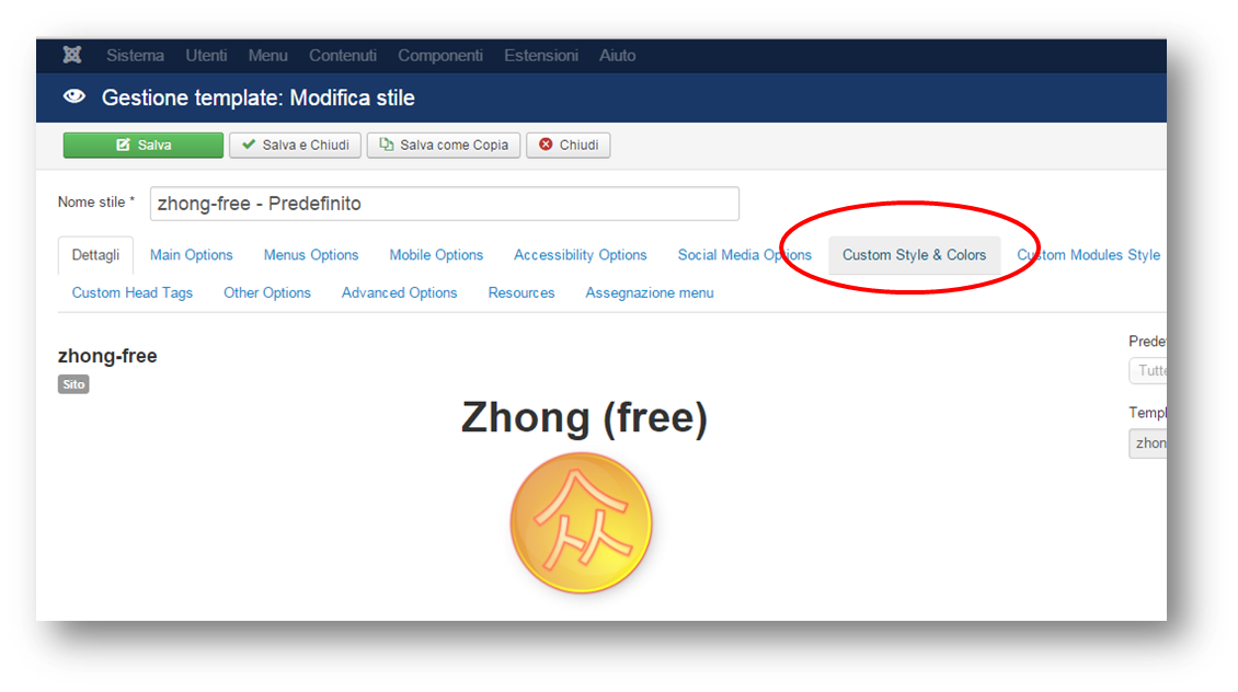 Il template Zhong consente, anche nella sua versione free, di modificare l'aspetto predefinito del sito mediante la personalizzazione di alcuni parametri che consentono di avvicinare l'aspetto delle pagine web ai riferimenti estetici di ciascuno.